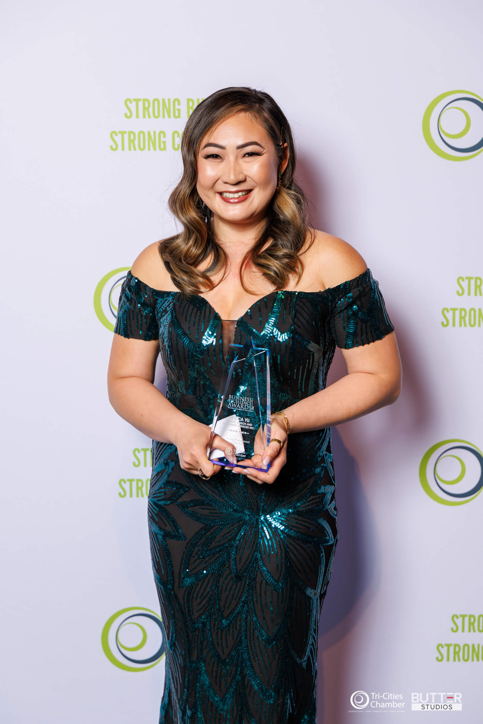 The Chamber received nearly 80 nominations for its eight award categories. A volunteer panel of 10 judges selected three finalists for each award, with the recipients announced at the gala. For the ninth award, Jenifer Wright, Past Chair of the Chamber's Board of Directors honored Shelley Linn as Chamber Member of the Year. The event was emceed by Kevin Lim, radio host and voice actor, and presented by Douglas College.