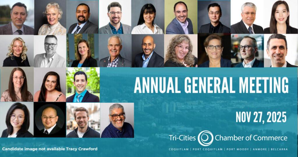 (TRI-CITIES) November 14, 2025 — The Tri-Cities Chamber of Commerce is pleased to announce the candidates standing for election to its 2026 Board of Directors. The election will take place at the Chamber's 54th Annual General Meeting on November 27 at the Executive Plaza Hotel, Coquitlam.