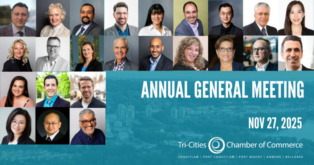 Since 1971, the Tri-Cities Chamber of Commerce has been the largest business association serving Coquitlam, Port Coquitlam, Port Moody, Anmore, and Belcarra, now representing 1,000+ organizations from every sector. The Chamber works to foster economic development, provide connections and benefits, and influence public policy at all levels of government to ensure strong business and strong communities. The Tri-Cities Chamber is an active member of the BC and Canadian Chambers of Commerce.