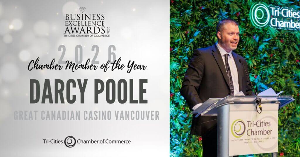 (Tri-Cities) April 10, 2026 The Tri-Cities Chamber of Commerce is proud to announce Darcy Poole, Assistant General Manager at Great Canadian Casino, as the 2026 Chamber Member of the Year.